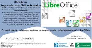 Neste obradoiro veremos como aproveitar algunhas das características que incorpora LibreOffice, e que son menos coñecidas polos usuarios desta suite ofimática. Como compartir documentos cos usuarios doutras ferramentas ofimáticas, configurar correctamente o idioma preferido, exportar documentos a PDF híbrido ou como asinar dixitalmente un documento.
